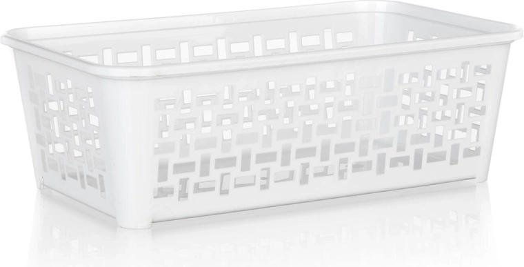 Praktický plastový košík s rozmermi 24,7 × 14,7 × 8 cm vám pomôže udržať poriadok v kúpeľni, kuchyni aj kancelárii. Vďaka perforovaným stranám je obsah vždy prehľadný a dobre vetraný. Košík možno vložiť priečne do väčšieho košíka 35,8 × 25,6 cm a vytvoriť tak medziposchodie, ktoré šetrí miesto. K dispozícii v mixe farieb pre jednoduché zladenie s interiérom.
