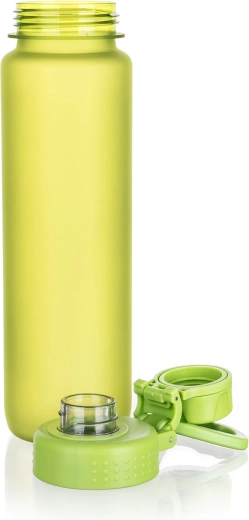 Robustný skrutkovací uzáver s flipom spoľahlivo tesní, takže fľašu môžete bez obáv nosiť v batohu či kabelke.