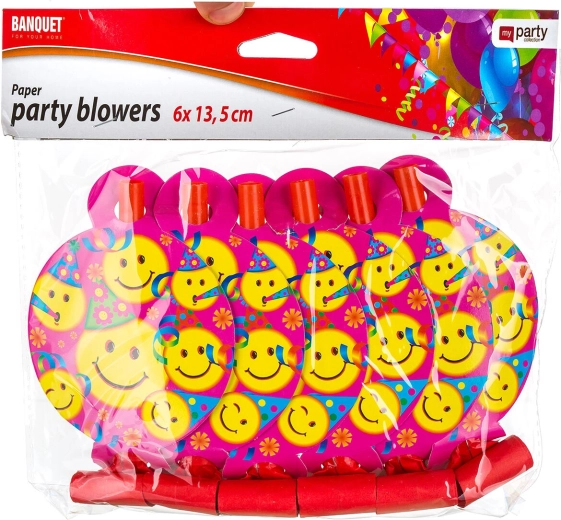 Rozbehnite oslavu s veselými frkačkami, ktoré pri fúknutí vydajú zvuk a roztiahnu farebnú ruličku. Ideálne na narodeniny, meniny, Silvester aj karneval. Ľahké, bezpečné a jednoducho použiteľné party doplnky s pestrofarebnou potlačou smajlíkov a balónikov pre okamžitú zábavu.