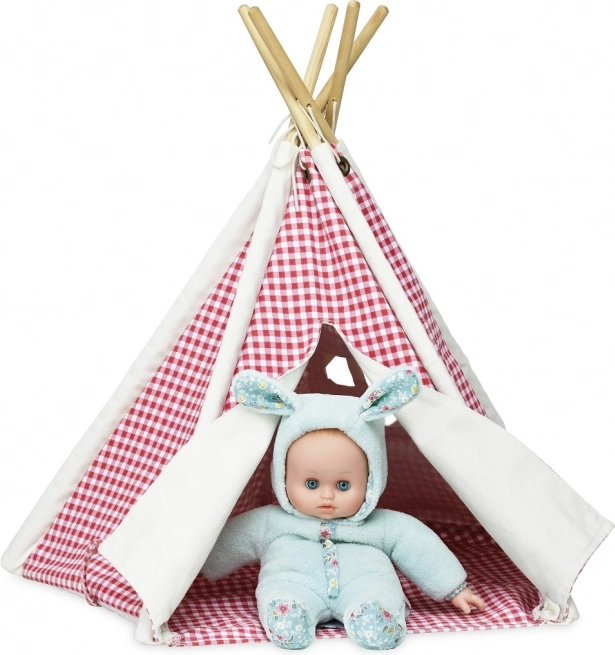 Mini týpí je ideálny doplnok na kreatívne hranie s bábikami. Vďaka drevenej konštrukcii a odolnému textilu drží tvar, ľahko sa prenáša a behom chvíľky ho postavíte aj zložíte. Károvaný dizajn v červeno-bielej farbe pôsobí hravo a zároveň štýlovo.