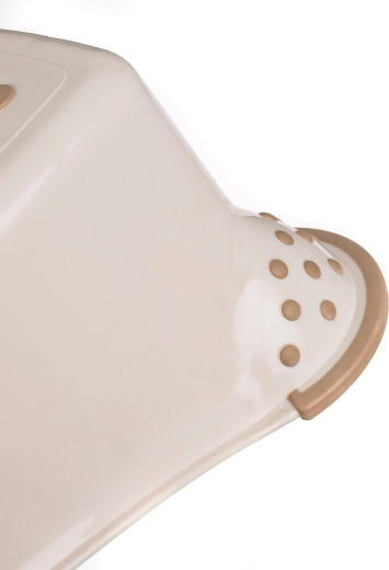 Protišmykové plochy na nášľapoch a stabilná základňa zabezpečujú bezpečný krok na hladkých podlahách. Kompaktné rozmery šetria miesto a krémové prevedenie sa hodí do kuchyne, kúpeľne aj detskej izby.