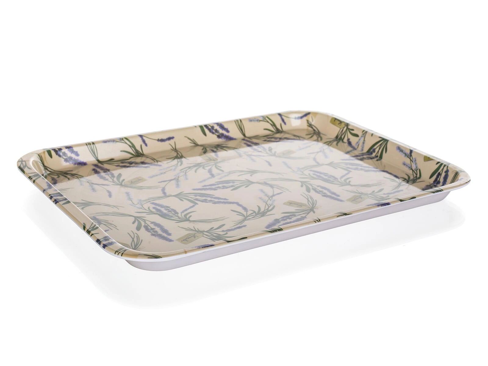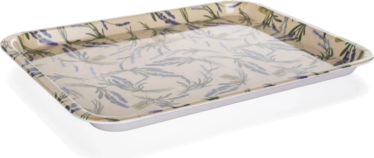 Štýlový podnos s motívom LAVENDER s rozmermi 30 × 21,5 cm z odolného melamínu uľahčí servírovanie nápojov a pokrmov. Je ľahký, ľahko sa s ním manipuluje a zvládne aj hrubšie zaobchádzanie. Nie je vhodný do umývačky riadu.