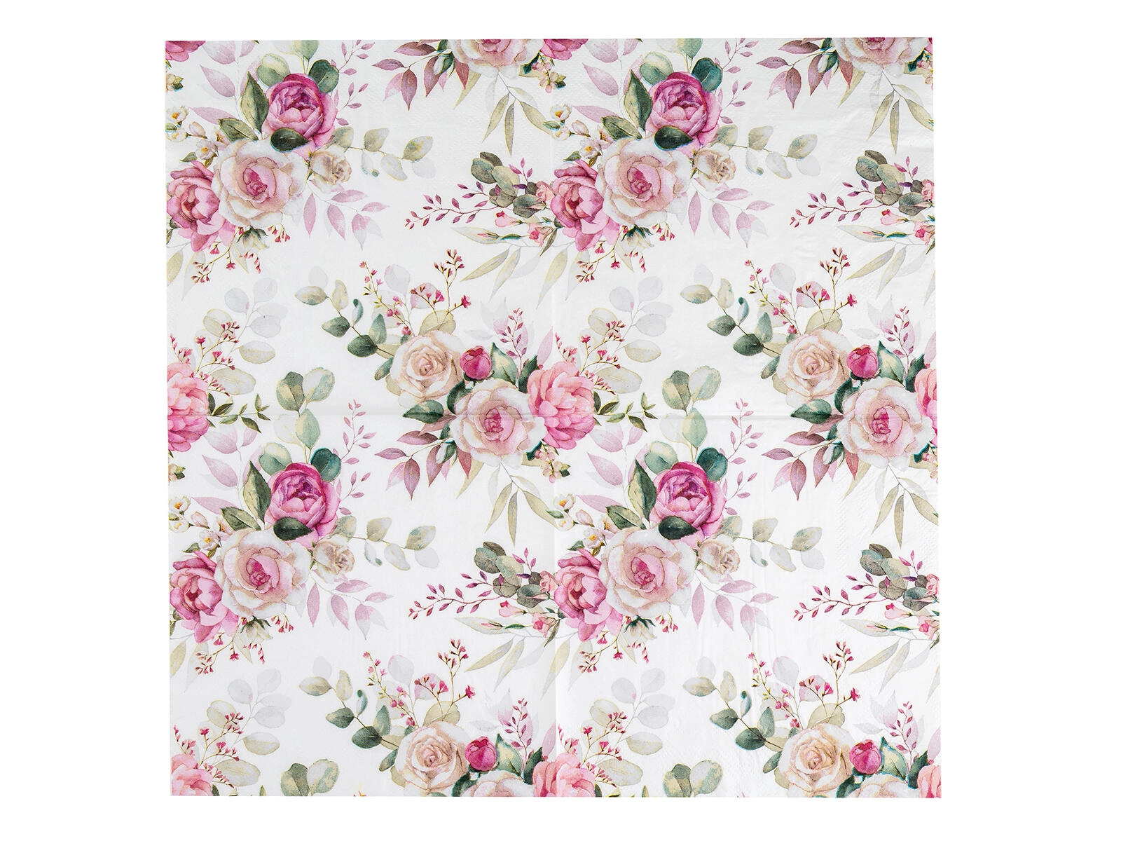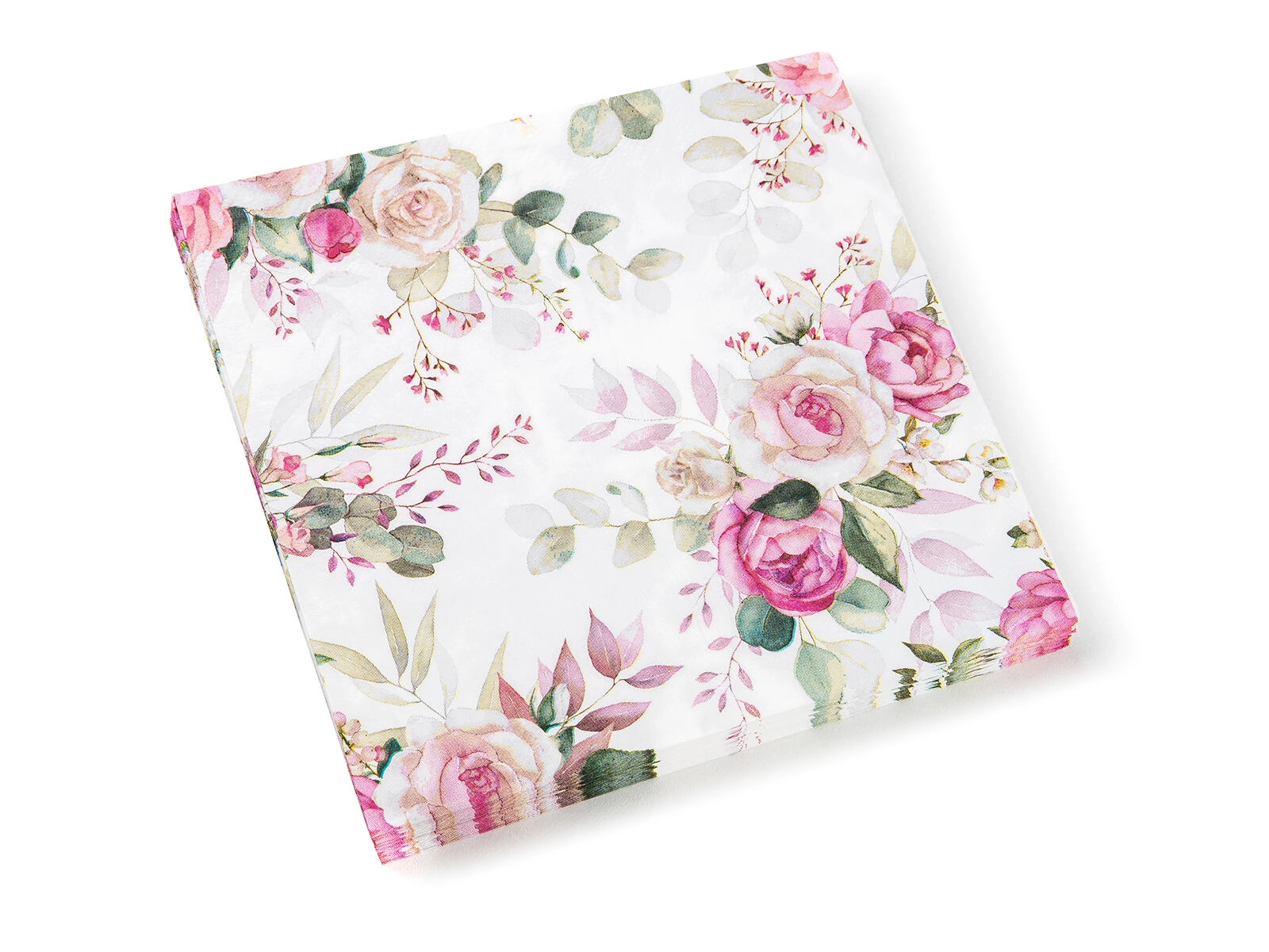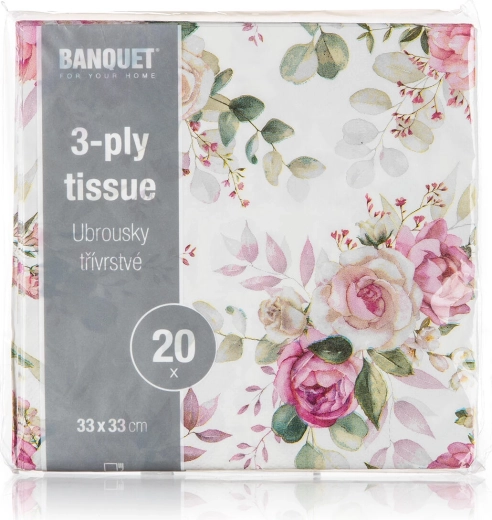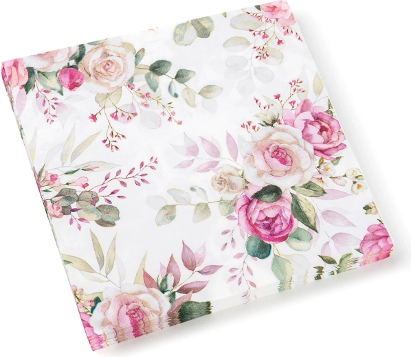 Elegantné papierové servítky s romantickým motívom ruží ozdobia každý stôl. Sú 3-vrstvové pre vyššiu savosť a pevnosť, majú praktický rozmer 33 × 33 cm a balenie 20 ks sa skvele hodí na oslavy, svadby aj každodenné stolovanie.
