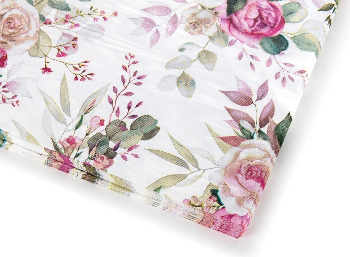 Servítky v dizajne Pink Rose sa hodia k romantickému, vidieckemu aj svadobnému štýlu výzdoby. Vďaka univerzálnemu formátu 33 × 33 cm sú praktické na servírovanie predjedál, dezertov aj hlavných chodov.