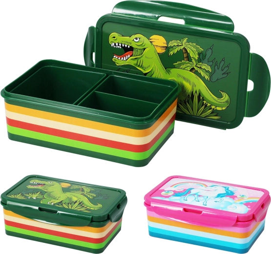 Box je vyrobený z odolného plastového materiálu a vďaka kompaktným rozmerom sa zmestí do školskej aktovky aj batohu na výlet. Ponúkame ho v atraktívnom mixe dvoch dekorov vo farbách zelená a ružová.
