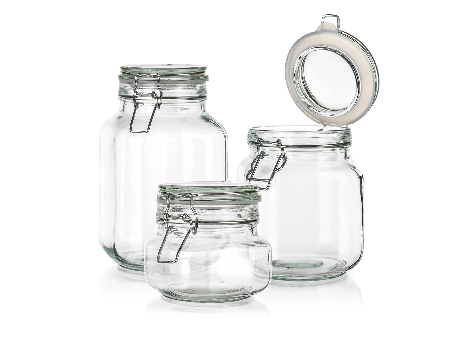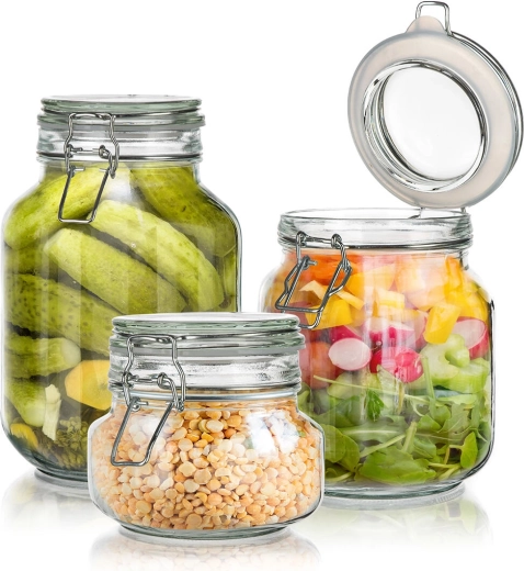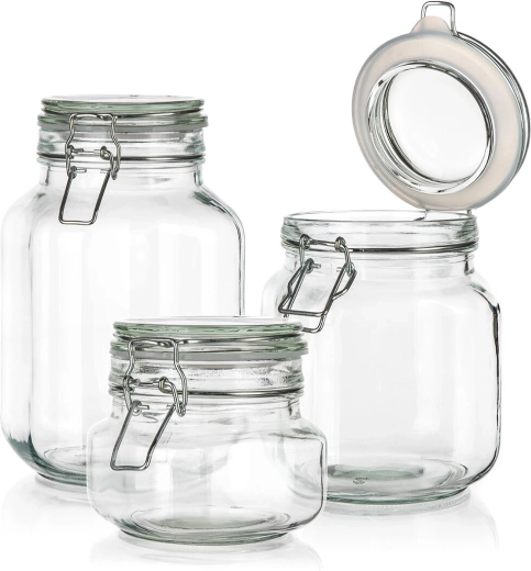 Praktická sada troch sklenených dóz EREA s objemami 0,5 l, 1 l a 2 l s hermetickým patentným uzáverom pre dlhodobú čerstvosť. Silikónové tesnenie zaistí vzduchotesné uzavretie, priehľadné sklo zasa okamžitý prehľad o obsahu. Ideálne na suché potraviny aj nakladanie.