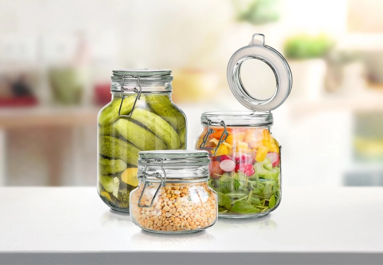 Číre sklo umožňuje ľahko skontrolovať obsah a množstvo bez otvárania, ideálne pre udržiavaný poriadok v špajzi.