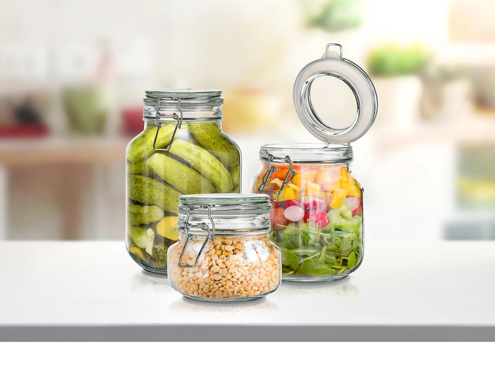 - Univerzálne využitie: cestoviny, ryža, strukoviny, sušené plody, bylinky aj nakladaná zelenina.