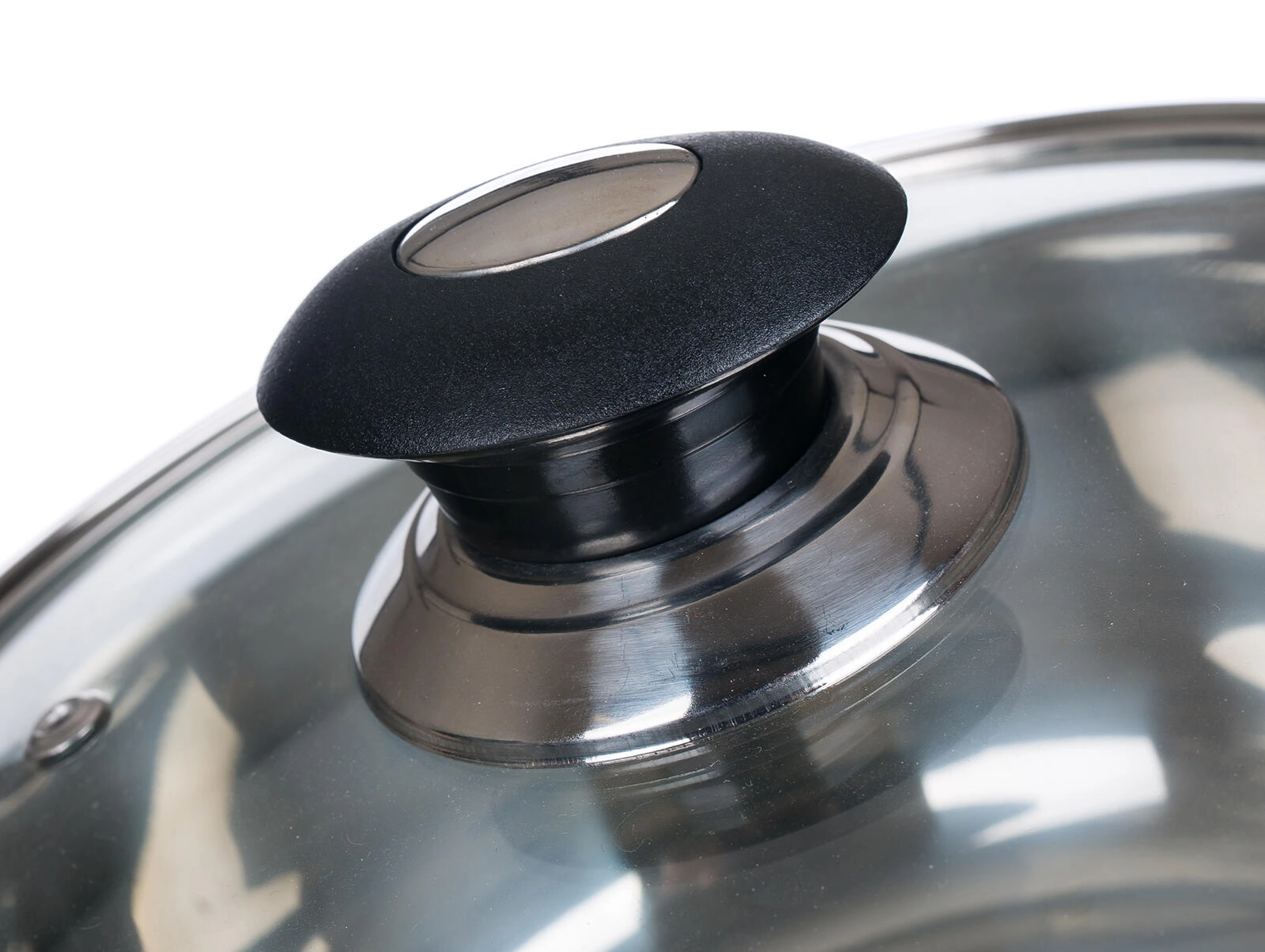 - Sklenené pokrievky s parným ventilom: pohodlná kontrola varenia a zachovanie chuti.