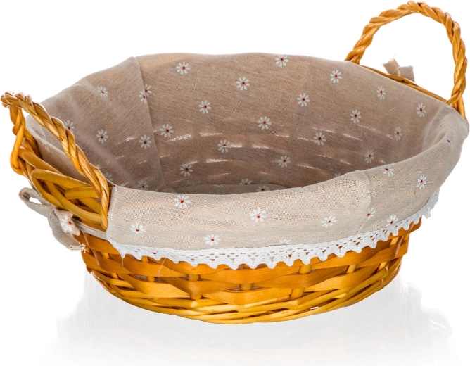 Vneste do svojho domova prírodný šarm s prúteným košíkom DAISY. Pevne pletené prútie v teplom hnedom odtieni a textilný vnútrajšok s motívom drobných kvetov vytvárajú elegantnú kombináciu, ktorá sa hodí na stôl, policu aj komodu. Vďaka dvom bočným ušiam sa košík pohodlne prenáša.
