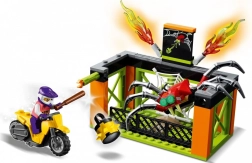 LEGO City kaskadérsky park Stuntz vám umožní roztočiť motorku so zotrvačníkom a predvádzať úžasné kúsky. S viacerými rampami a ohnivými prekážkami táto stavebnica ponúka nekonečné možnosti pre imaginatívnu hru. Môžete ju kombinovať s inými setmi LEGO City Stuntz a vytvoriť si ešte väčší kaskadérsky park.