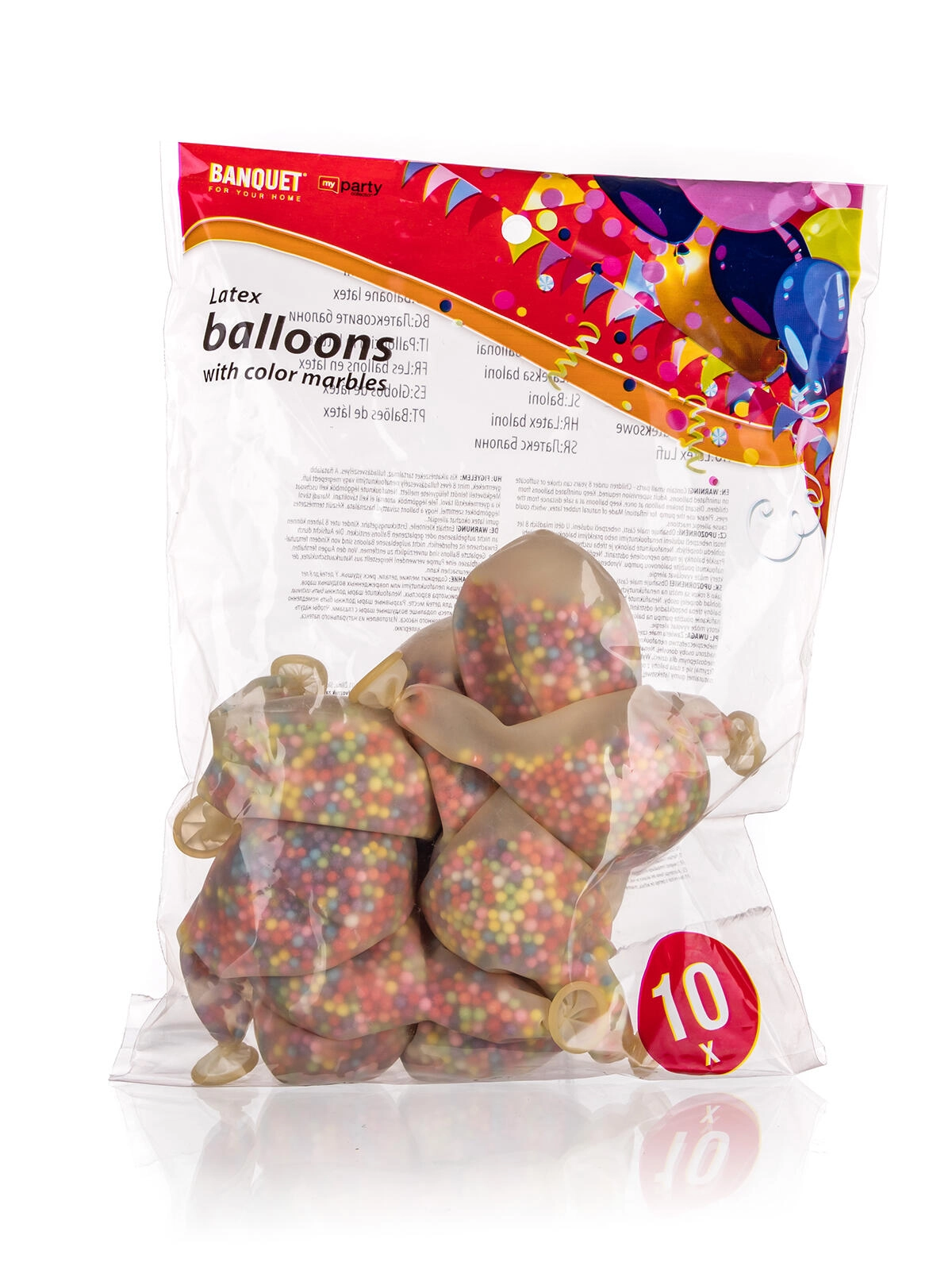 Rozžiarte každú oslavu so sadou latexových balónikov s guľôčkami MY PARTY. V balení nájdete 10 ks kvalitných, zdravotne nezávadných balónikov s priemerom cca 30 cm, plnených farebnými polyesterovými guľôčkami pre efektný vzhľad. Ideálne na narodeniny, párty aj slávnostné dekorácie.
