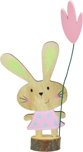 Roztomilá drevená dekorácia so zajačikom na pni s výškou 17 cm dodá vášmu domovu jarné aj celoročné čaro. Skvele sa hodí na poličku, komodu aj sviatočný stôl. Vyrobené z prírodného materiálu pre nadčasový vzhľad a jednoduché ladenie s interiérom. Prírodné drevo, jemné detaily a ideálna veľkosť pre menšie aj väčšie aranžmány.