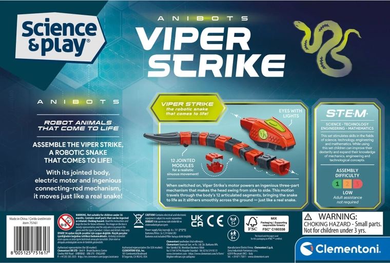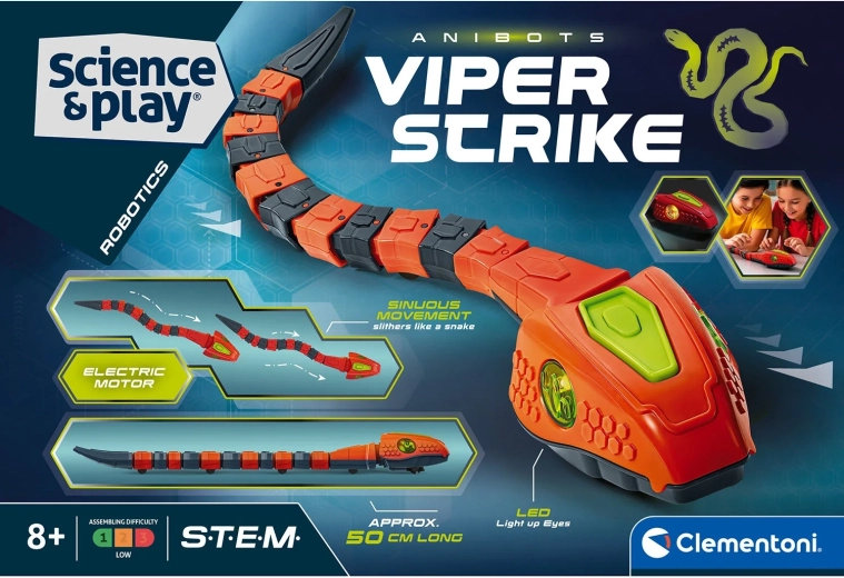 Viper Strike je interaktívny robot inšpirovaný svetom zvierat, navrhnutý tak, aby deťom zábavne a názorne priblížil princípy mechaniky, elektroniky a programového myslenia. Vďaka segmentovanej stavbe a jednoduchým mechanickým interakciám deti pozorujú, ako spolu jednotlivé časti spolupracujú a vytvárajú plynulý, hadovitý pohyb vpred.