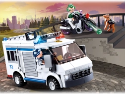 Väzenské vozidlo, motorka, 2 figúrky, policajný pes, doplnky, návod