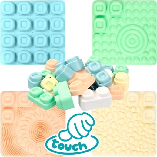 Sada MOCHTOYS Play & Squish prináša bezpečné a podnetné prostredie na objavovanie textúr, tvarov a farieb. Každá podložka má odlišnú štruktúru, ktorá podporuje vnímanie dotyku, zatiaľ čo mäkké a pružné kocky sú ľahko uchopiteľné aj pre malé ruky a lákajú na stavanie, triedenie a voľnú hru.