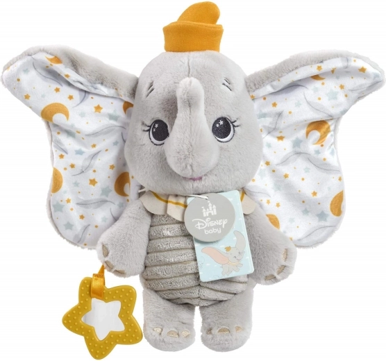 Roztomilý plyšový sloník DUMBO je ideálny prvý kamarát pre bábätká. Ponúka extra jemný, bezpečný materiál, vyšívané detaily šetrné k pokožke a hviezdičkové hryzátko na úľavu pri raste zúbkov. Vďaka rôznorodým textúram podporuje zmyslový rozvoj, upokojí pri zaspávaní a je perfektný aj na cesty.