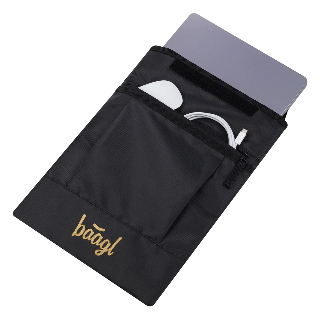 Predné vrecko na drobnosti pojme nabíjačku, myš aj káble a kvalitný zips YKK zaistí hladké otváranie a dlhú životnosť. Obal je vyrobený zo 100% recyklovaného materiálu, takže je šetrný k prírode a skvele zladiteľný s ďalším vybavením BAAGL.