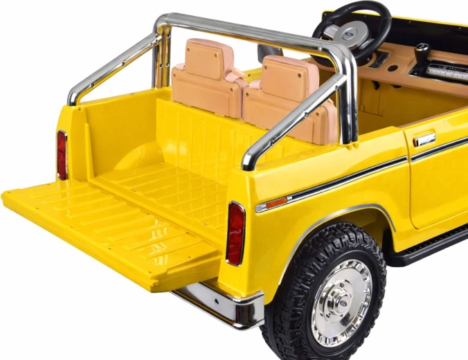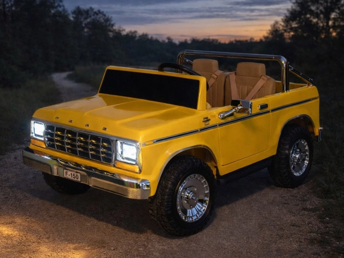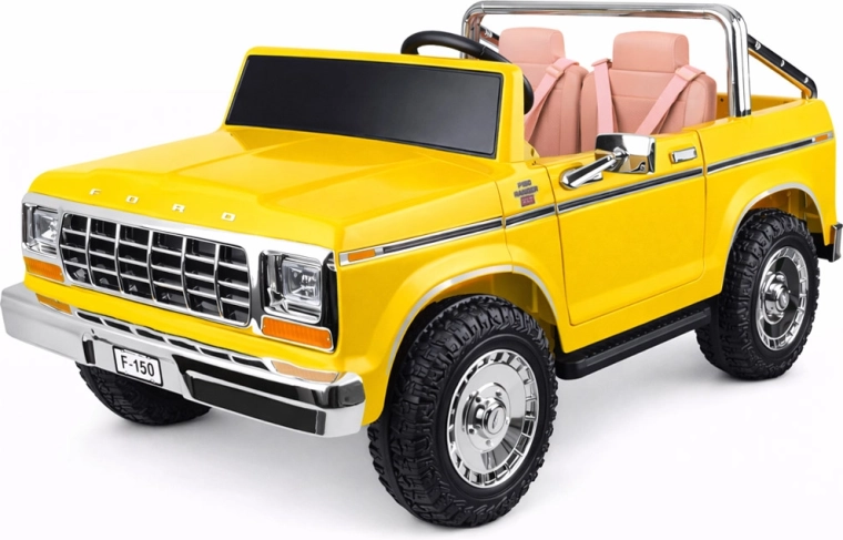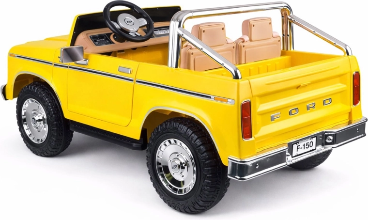 Legendárny vzhľad amerického pick-upu v detskom prevedení. Elektrické autíčko pre dvoch malých vodičov zaujme klasickými tvarmi, chrómovanými detailmi a precízne spracovaným interiérom s eko‑koženými sedadlami, ukazovateľom stavu batérie a pákou na zmenu smeru jazdy. Vpredu má svetlomety, po bokoch zrkadlá a nechýbajú ani otváracie dvere pre pohodlné nastupovanie a otváracia zadná korba.