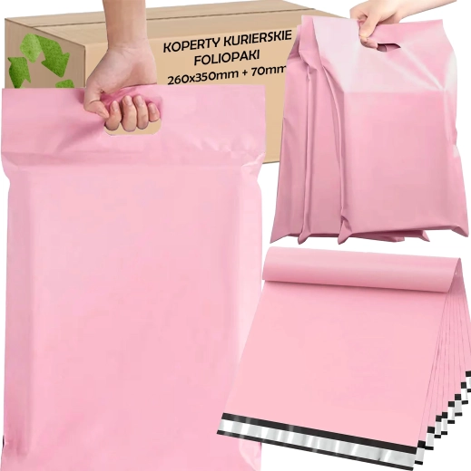 Praktické ružové kuriérske obálky z LDPE s výsekovým uškom na pohodlné nosenie. Ponúkajú bezpečné uzatvorenie vďaka samolepiacemu pásiku, odolnosť proti roztrhnutiu a ochranu súkromia vďaka nepriehľadnému materiálu. Ideálne pre e‑shopové zásielky a darčekové balenie, rozmer 260 × 350 + 70 mm, balenie 50 ks.
