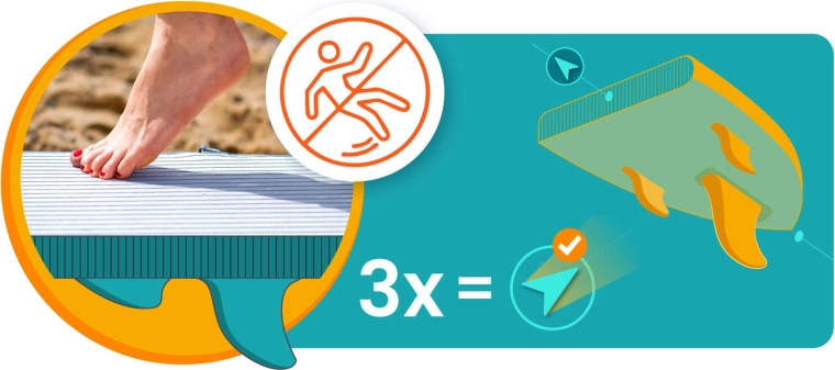 Tri plutvy zabezpečujú smerovú stabilitu a plynulé zatáčanie. Ideálne na pokojnú vodu aj menšie vlny pre začiatočníkov aj pokročilých.