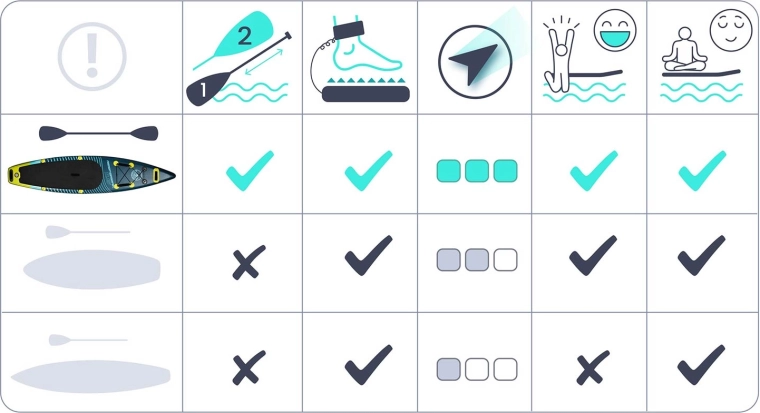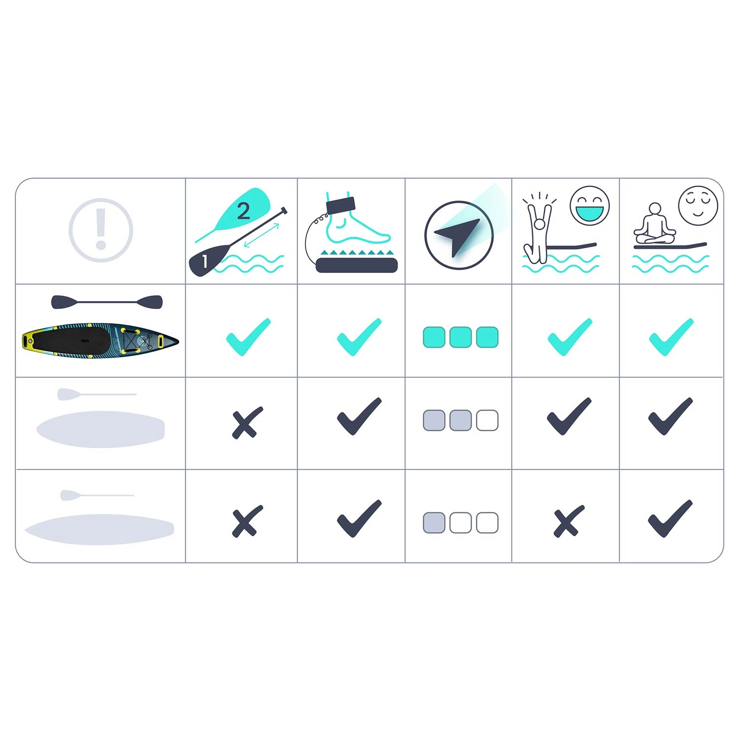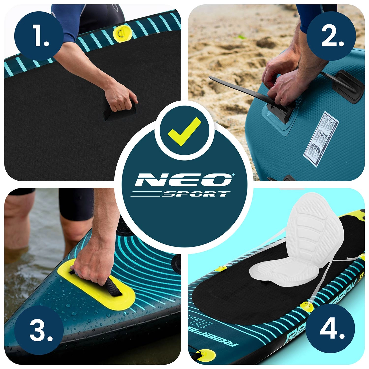 Všetko, čo potrebujete, v jednom balení: nastaviteľné pádlo, dvojčinná pumpa s manometrom, bezpečnostný leash, plutva, opravná sada a odolný batoh na jednoduchý transport.