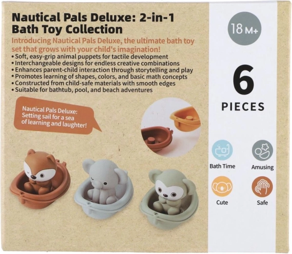 Táto hravá kúpeľová sada prináša deťom veľa zábavy vo vani aj v bazéniku. Zvieratká v lodičkách sú navrhnuté s hladkými, zaoblenými tvarmi na bezpečné hranie, ľahko sa držia a krásne plávajú na vode. Vďaka príjemnému, mäkkému materiálu sú ideálne pre malé deti a každodenné vodné radovánky.
