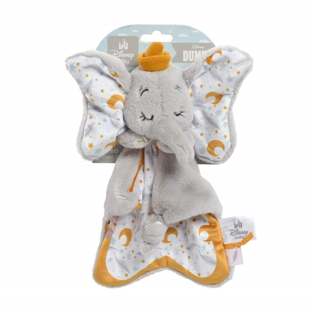 Urobte radosť najmenším hebučkým mojkáčikom so sloníkom DUMBO. Mäkučký plyš, jemné tóny a uzlík pre ľahké držanie podporujú pokojné zaspávanie aj pohodové túlenie doma aj na cestách. Perfektný spoločník od narodenia a krásny darček pre malých fanúšikov DISNEY.