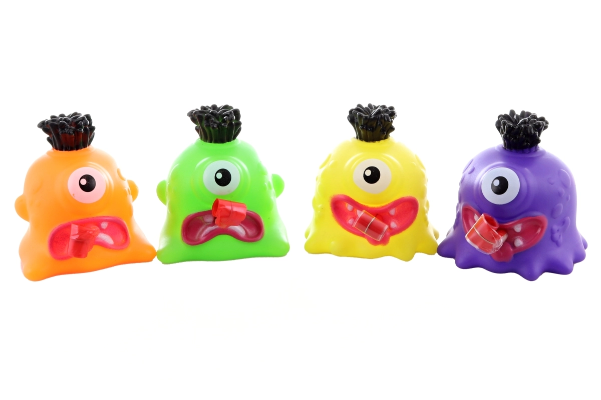 Zábavná mačkacia príšerka z mäkkého plastu poteší deti od 3 rokov. Po stlačení vyplazí jazyk a zapíska, čo podnecuje hru a smiech. Dostupná v rôznych farbách podľa skladovej dostupnosti. Kompaktné rozmery 7 × 7 × 7 cm sa skvele hodia do detskej ruky.