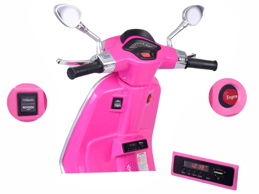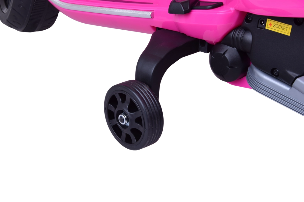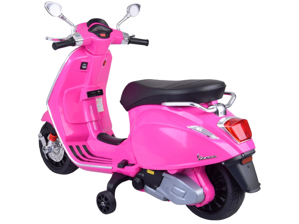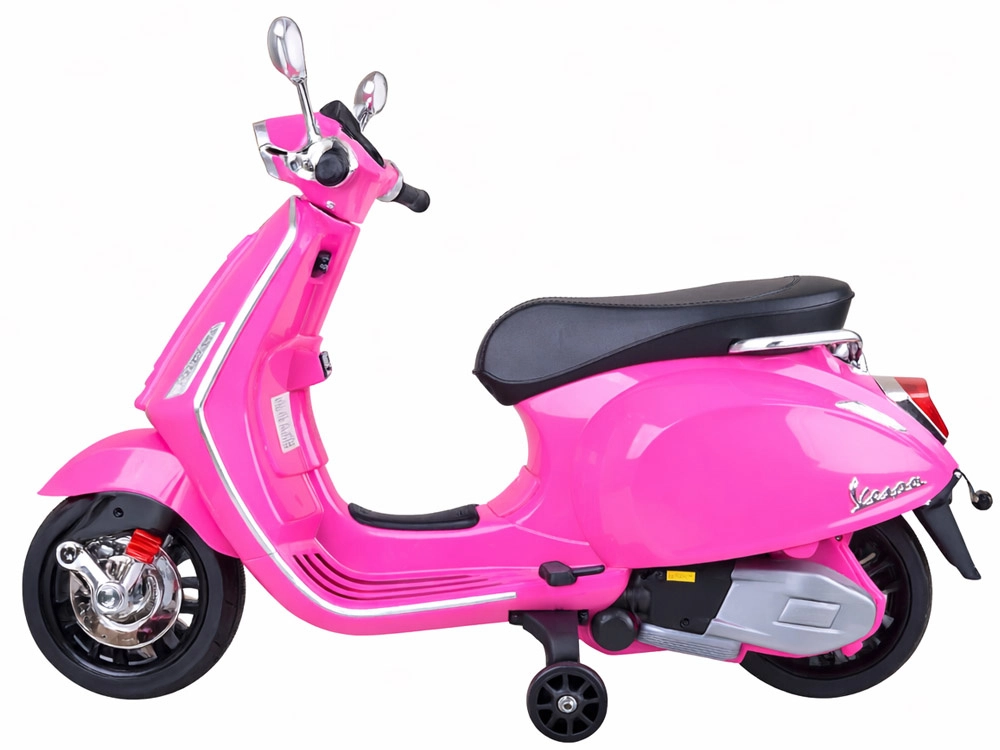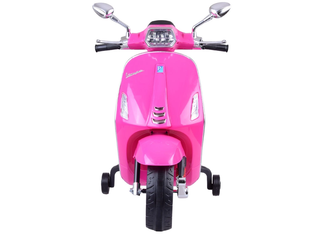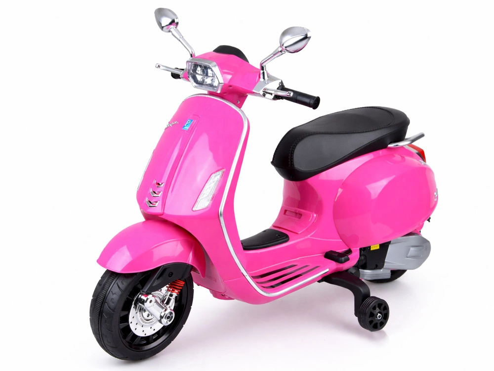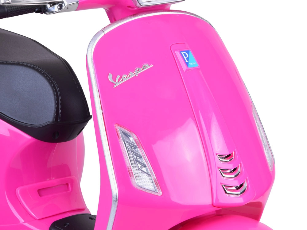Elektrický detský skúter v štýle VESPA spája elegantný dizajn s modernými funkciami. Štartuje sa tlačidlom a simulácia zvuku motora navodí autentický zážitok z jazdy. Výkonný pohon 2 × 12 V / 25 W a akumulátor 12 V / 4,5 Ah zabezpečujú komfortnú a plynulú jazdu, zatiaľ čo predný svetlomet dodáva štýl aj lepšiu viditeľnosť.