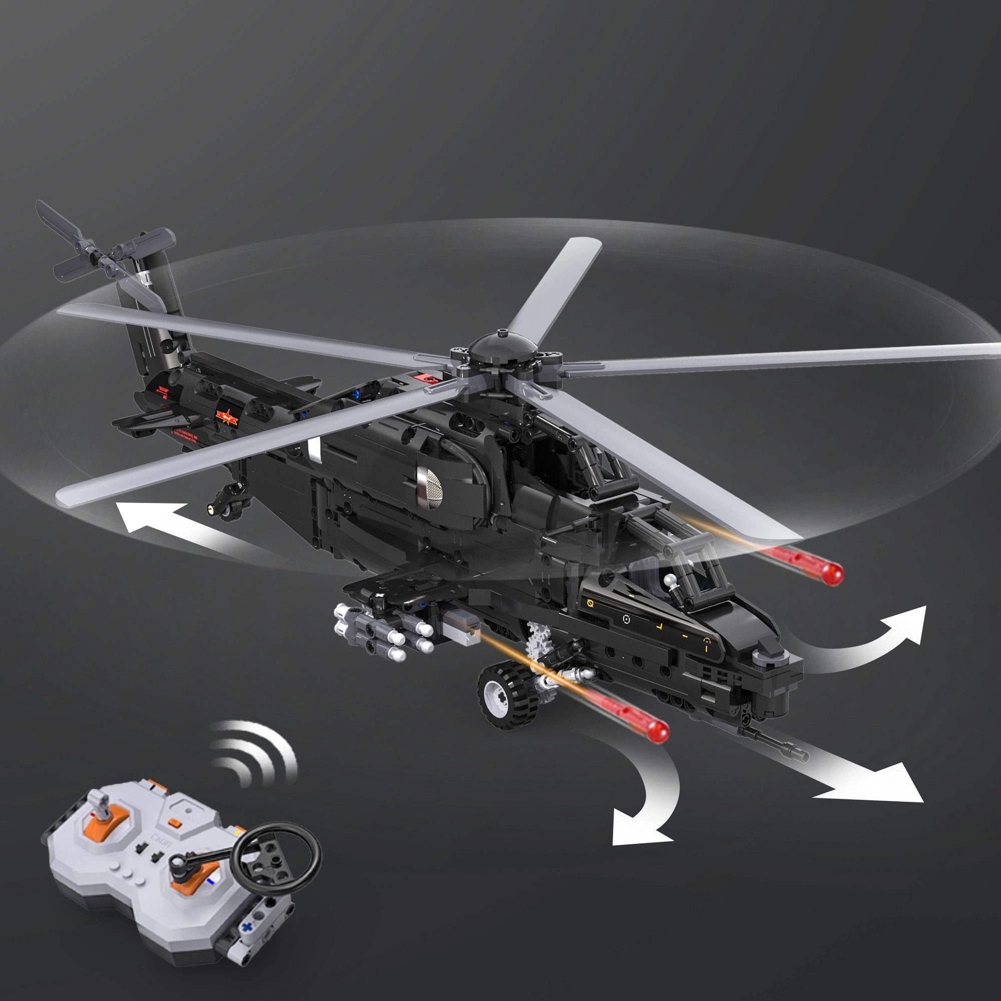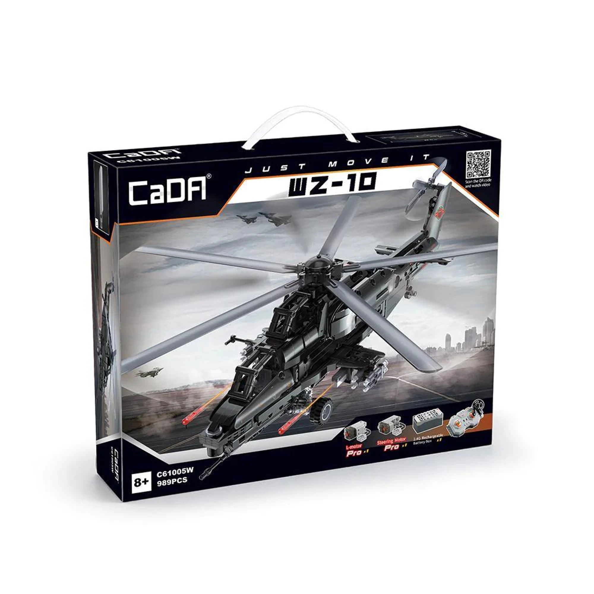 Stavebnica zo série Just Move It poteší všetkých nadšených konštruktérov, ktorí milujú technické modely s realistickými funkciami. Vrtuľník WZ-10 v elegantnej čiernej farbe so sivými detailmi vyniká dômyselnou mechanikou rotorov, ktoré možno roztočiť manuálne aj počas jazdy, a detailne spracovaným trupom s otvárateľným kokpitom.