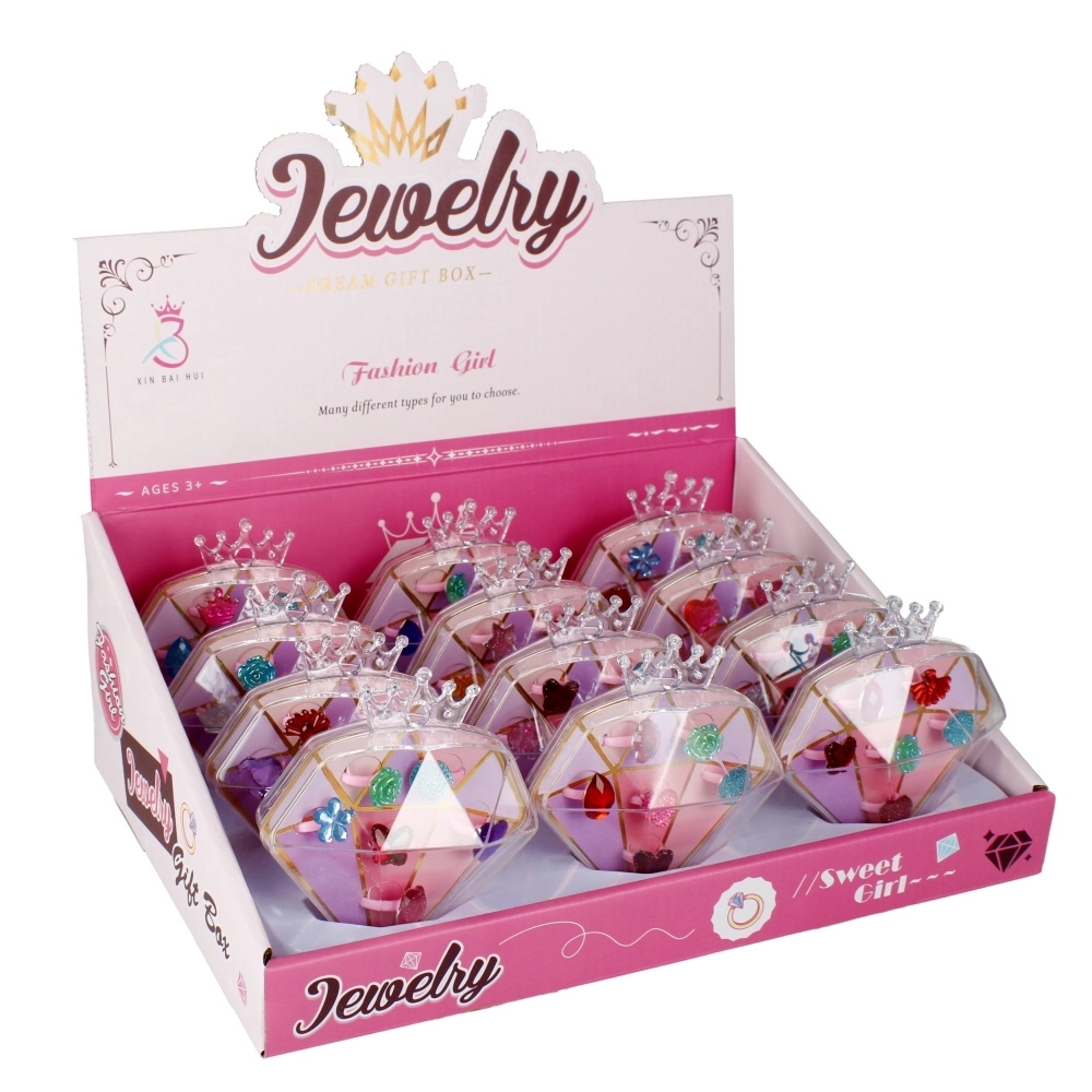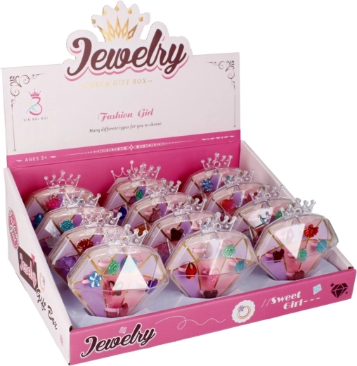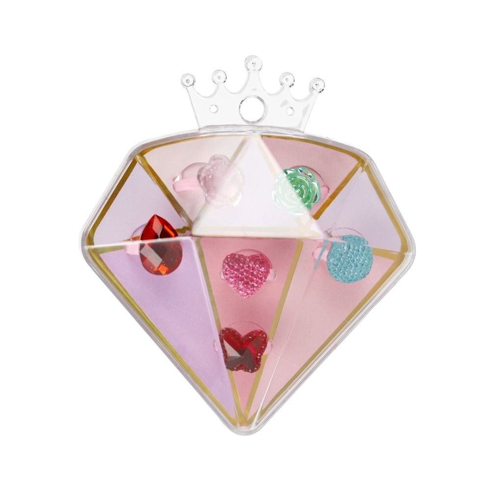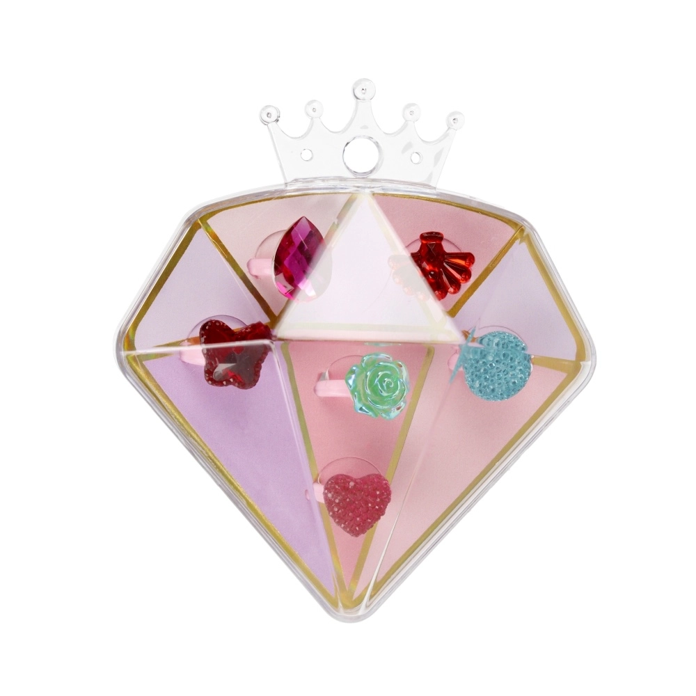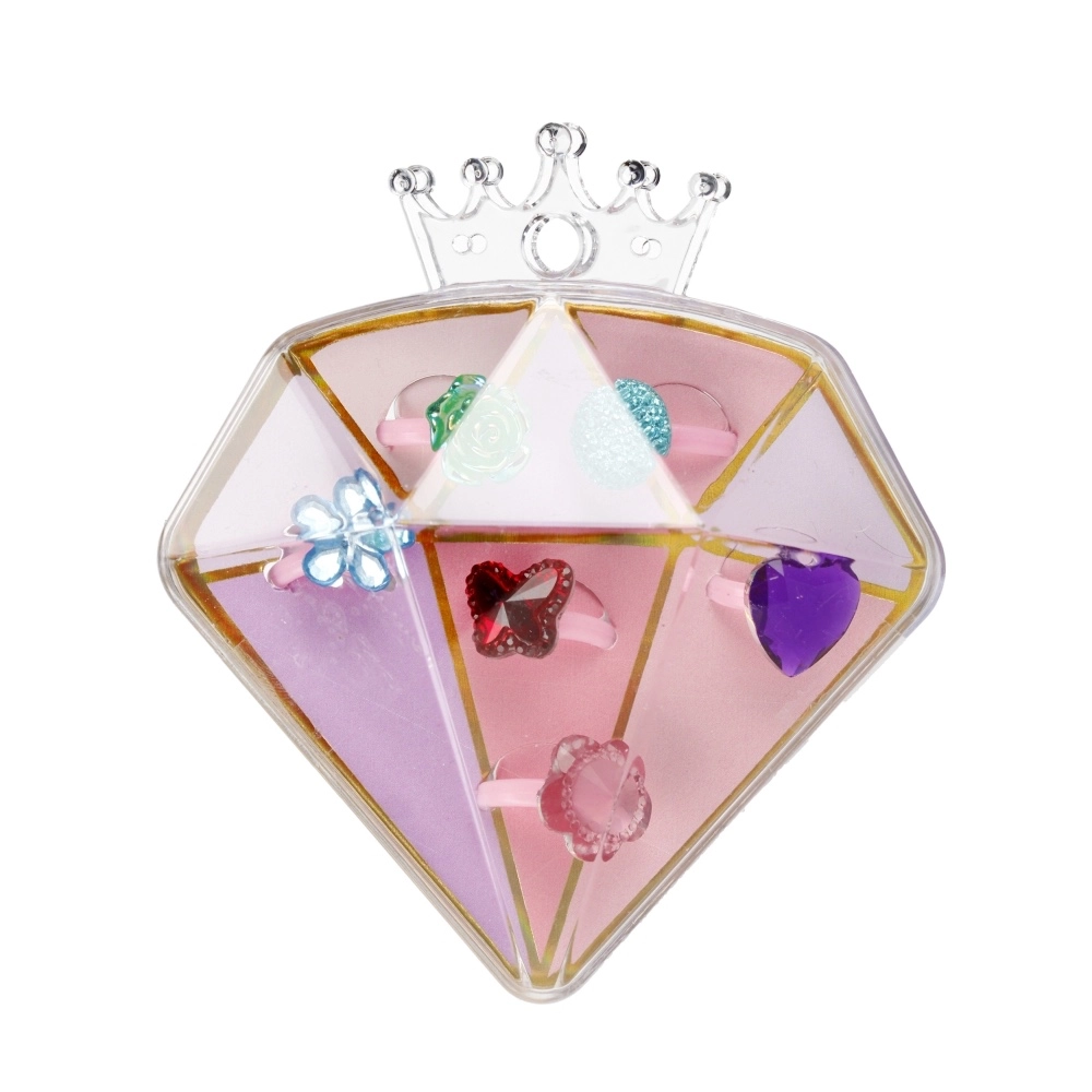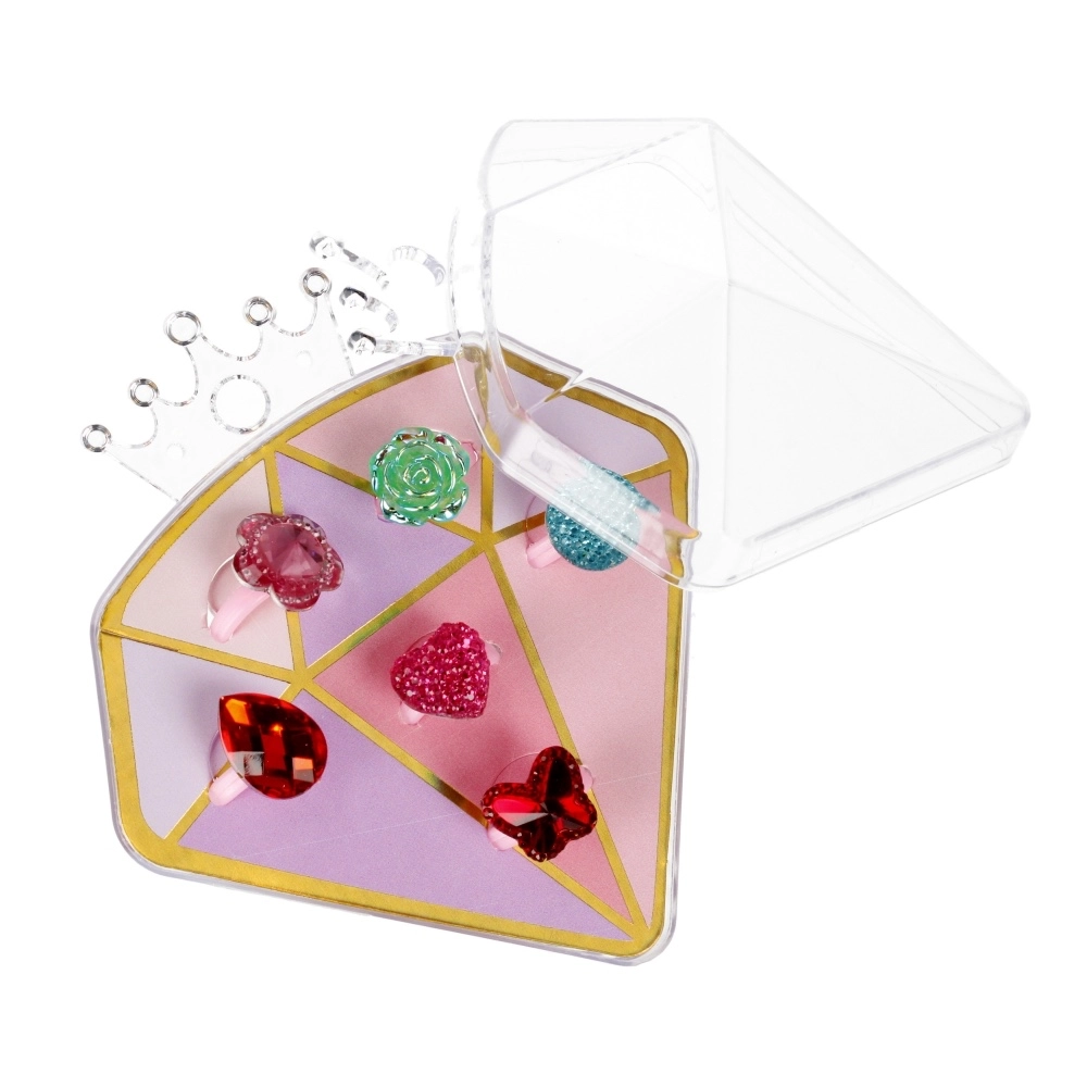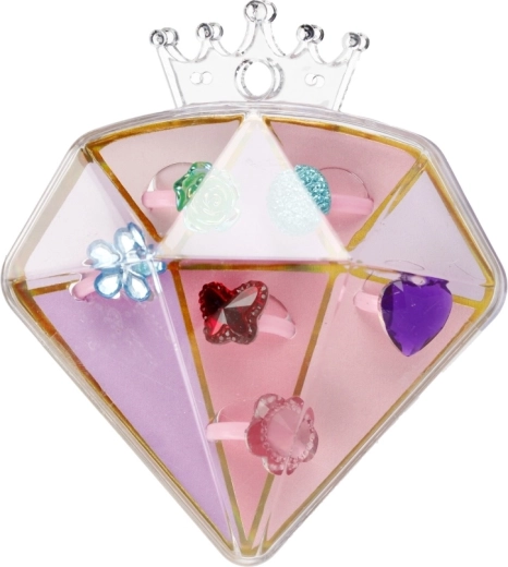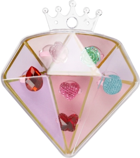 Doprajte deťom radosť z prezliekania a fantázie so štýlovou sadou prstienkov v elegantnej krabičke v tvare diamantu. Každý prstienok má iný motív (srdiečka, kvietky, kamienky) a veselú farbu, takže si deti ľahko vyberú ten pravý na každý deň.
