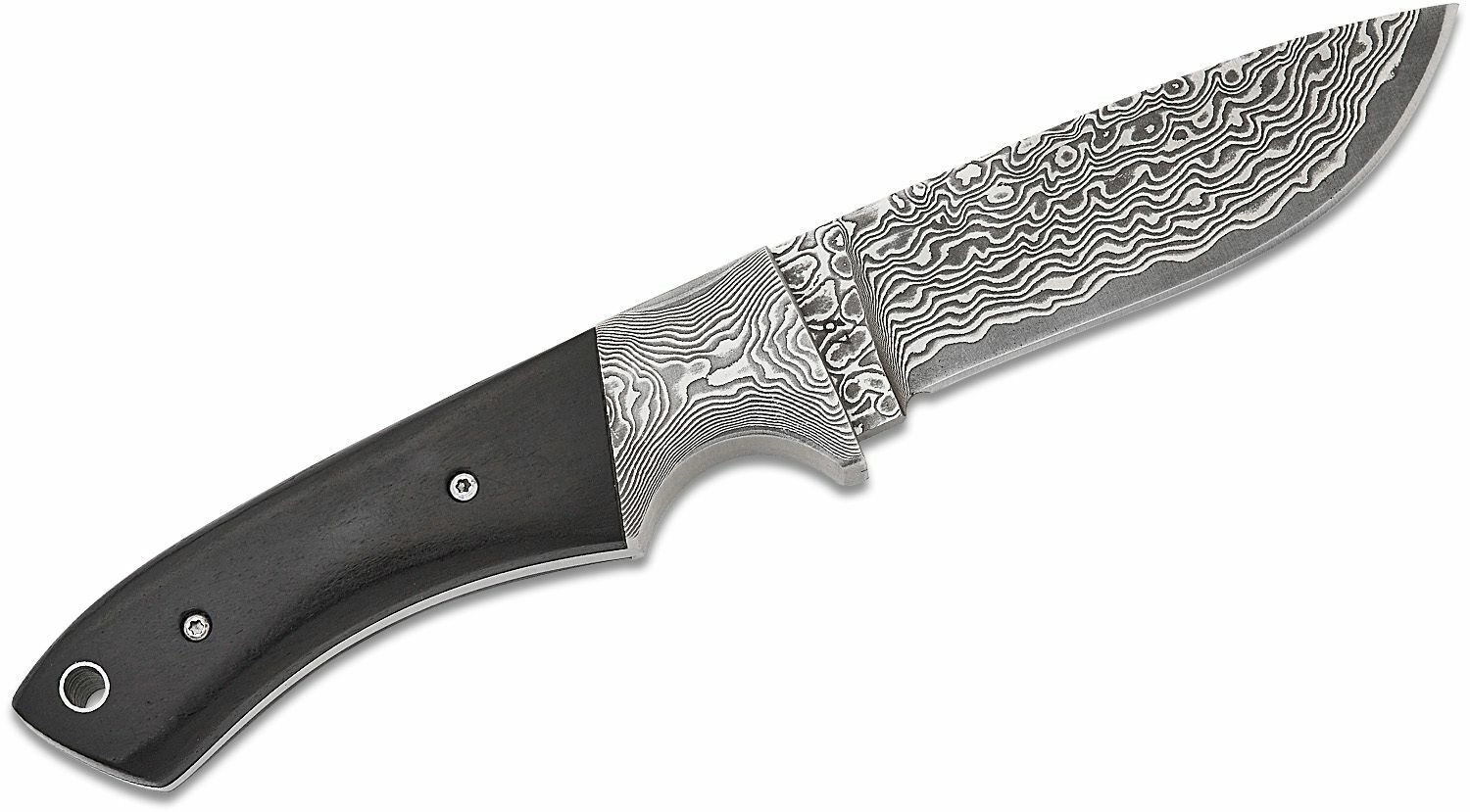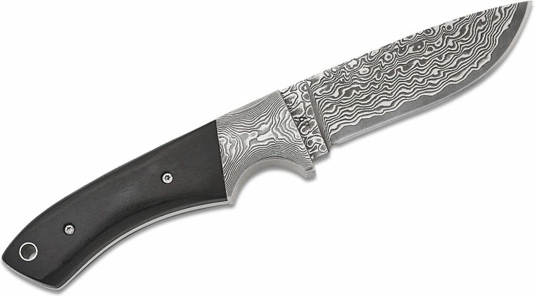 Dekoratívny damascénsky vzor a viacvrstvové zloženie zvyšujú odolnosť, držanie ostria a estetiku noža pri love aj každodennom použití.