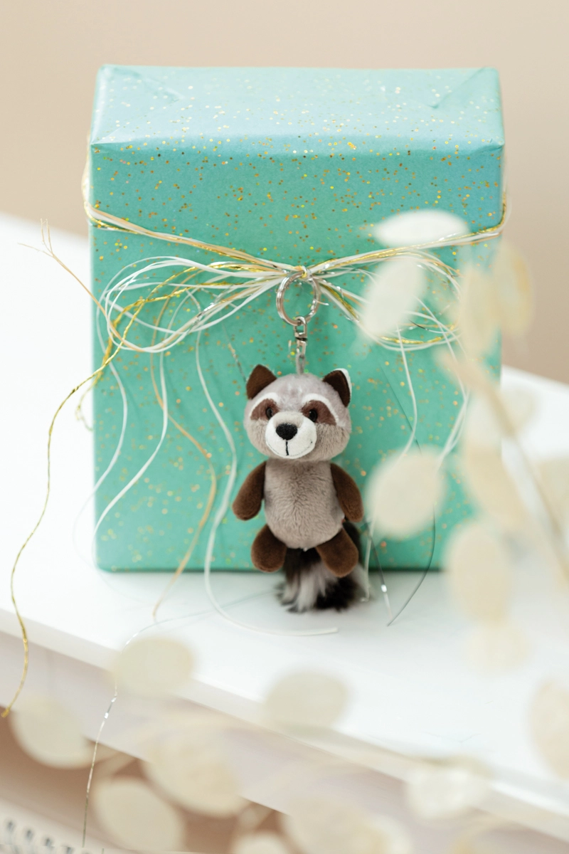 Mýval Lenno nadchne mäkkým materiálom, jemnými detailmi a nadýchaným chvostíkom – ideálny ako štýlový prívesok.