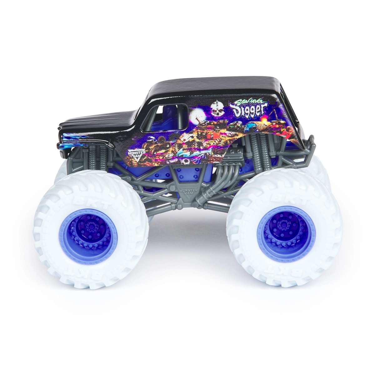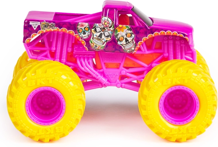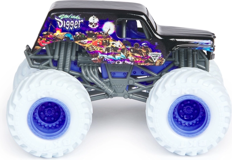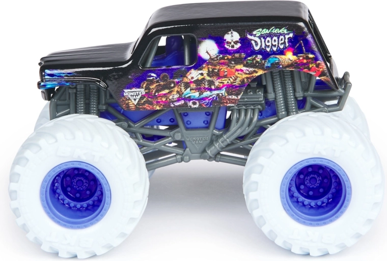 Objavte oficiálny Monster Jam v mierke 1:64 – detailný kovový model s autentickým podvozkom a pneumatikami BKT. Skvelý do zbierky aj na hranie, v assortmente nájdete populárne trucky ako El Toro Loco, Grave Digger, Megalodon, Blue Thunder či Alien Invasion. Odolné spracovanie, výrazná grafika a voľne sa otáčajúce kolesá zaručia hodiny akčnej zábavy.
