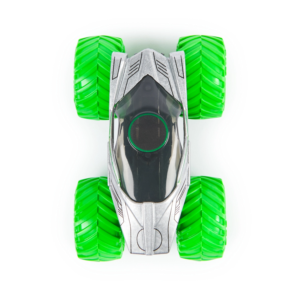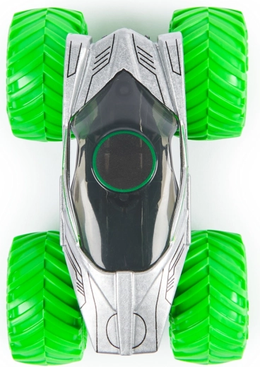 Neónovo zelené pneumatiky BKT a strieborno‑čierna karoséria zaujmú na prvý pohľad. Pripravené na odvážne skoky a fantáziu bez hraníc.