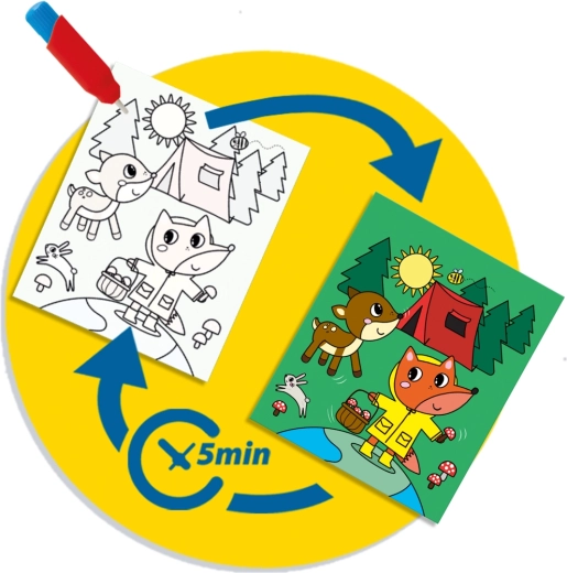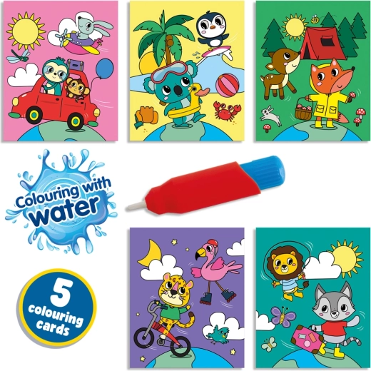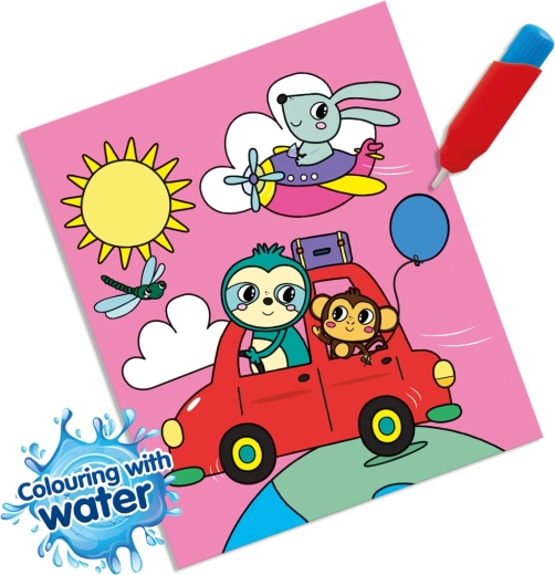 Vodné omaľovánky pre malých cestovateľov prinášajú kreatívne hranie bez kvapky neporiadku. Jednoducho naplňte priložený vodný štetec, prejdite ním po obrázku a v priebehu chvíľky sa objavia jasné farby a skryté detaily. Po vyschnutí sa stránky vrátia do pôvodného stavu a deti môžu maľovať znova a znova.