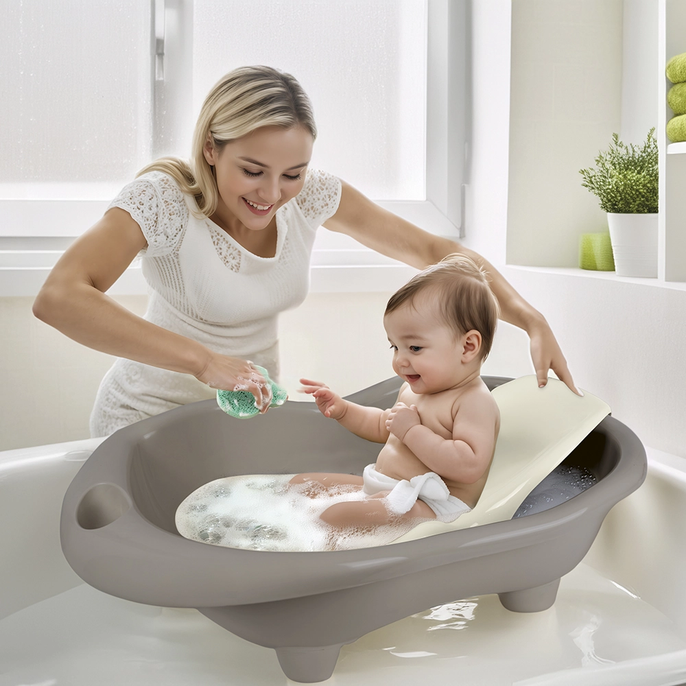 Ergonomické ležadlo s tromi opornými bodmi drží dieťa v správnej polohe a zvyšuje bezpečie pri kúpaní.