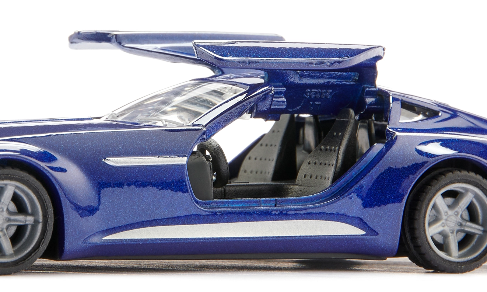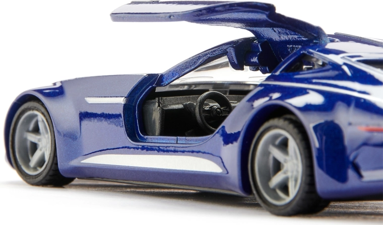 Model nadchne ikonickými „gullwing“ dverami, ktoré sa otvárajú nahor a odhaľujú detailný interiér – perfektné na hranie aj vystavenie.