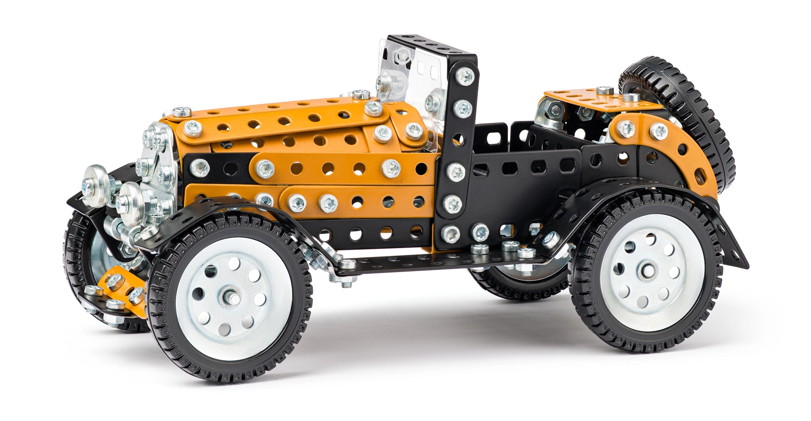 Postavte si štýlový veterán AERO z odolných kovových dielov a užite si hodiny zábavy pri tvorení. Stavebnica MERKUR rozvíja technické zručnosti, fantáziu a sústredenie – a výsledný model poteší každého malého aj veľkého nadšenca do konštrukčných setov.