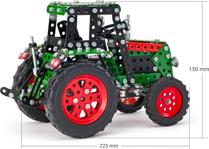 Objavte svet konštrukčnej zábavy so stavebnicou Merkur traktor 4x4. Kovové dieliky a skrutky umožnia postaviť zelený traktor 4x4, ktorý rozvíja jemnú motoriku, logické myslenie a sústredenie. V balení je 567 dielikov, obtiažnosť úroveň 3, všetko balené v praktickej krabičke. Vhodné pre deti od 5 rokov.
