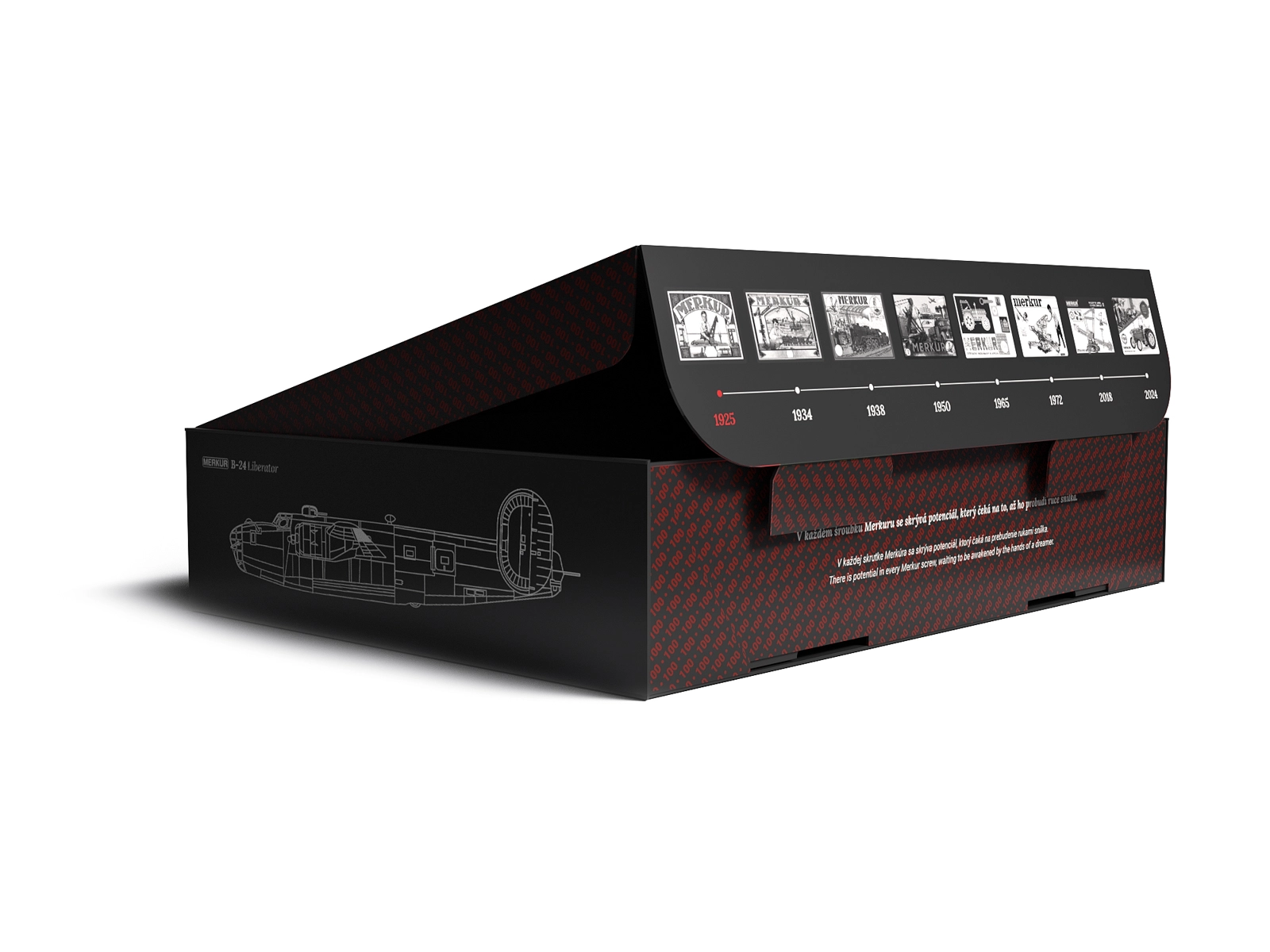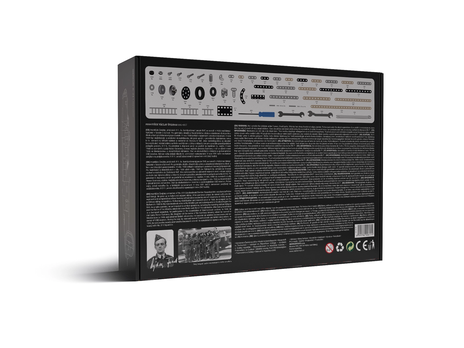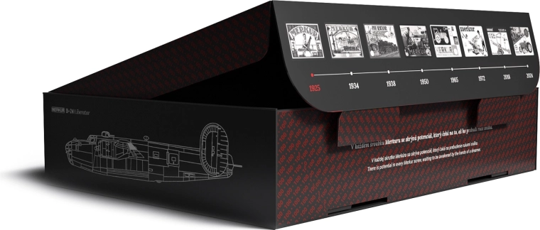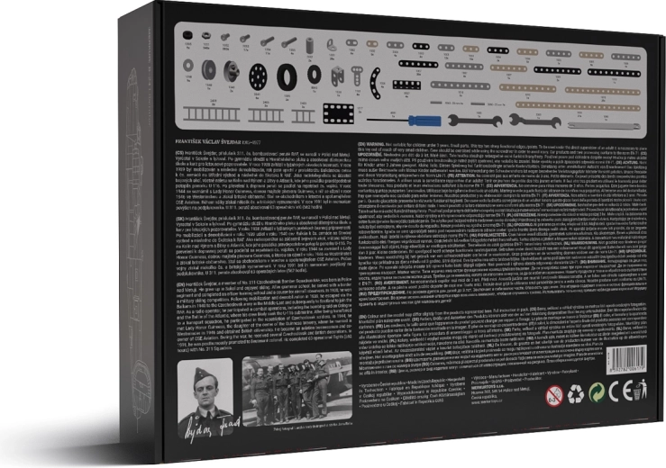 Táto exkluzívna edícia MERKUR vznikla na počesť českého letca Františka Švejdara a je vyrobená v limitovanom náklade 2 500 kusov. Kovové perforované diely, skrutky a matice zaručujú stabilitu a dlhú životnosť, pričom výsledný model verne vystihuje ikonický bombardér B-24 Liberator s funkčnými detailmi podvozku a vrtúľ.