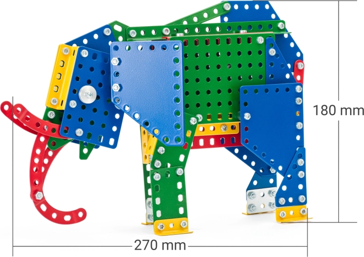 Stavebnica Merkur zoo – slon je skvelou voľbou pre deti, ktoré milujú tvorenie a techniku. Vďaka odolným kovovým súčiastkam a spájaniu pomocou skrutiek si malí stavitelia precvičia trpezlivosť a sústredenie, zároveň si užijú dlhé hodiny zábavy.