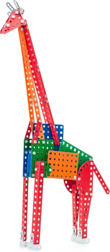 Stavebnica Merkur zoo žirafa prináša deťom zábavný spôsob, ako rozvíjať technické zručnosti a predstavivosť. Kovové prvky sa spájajú skrutkami a matičkami, takže si deti precvičia trpezlivosť, presnosť aj koordináciu rúk. Hotový model žirafy dosahuje pôsobivé rozmery a stane sa ozdobou detskej izby.