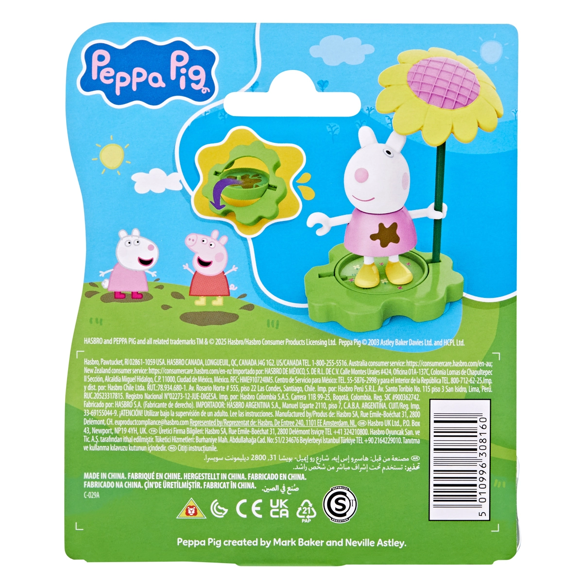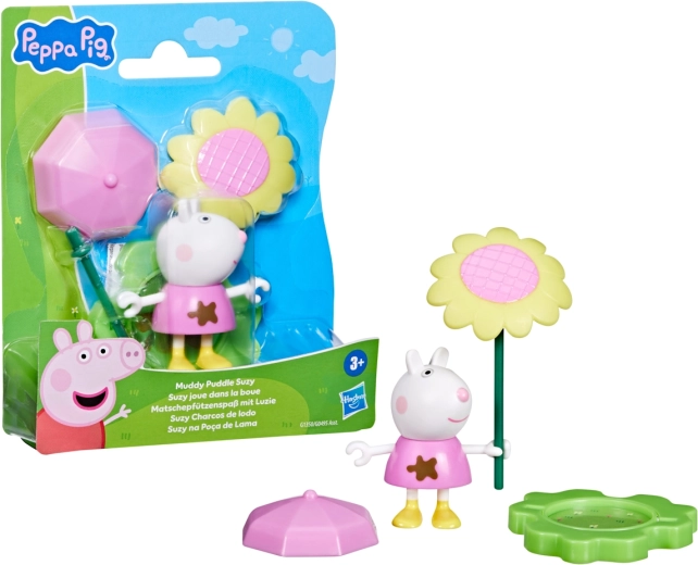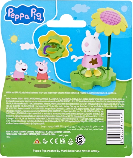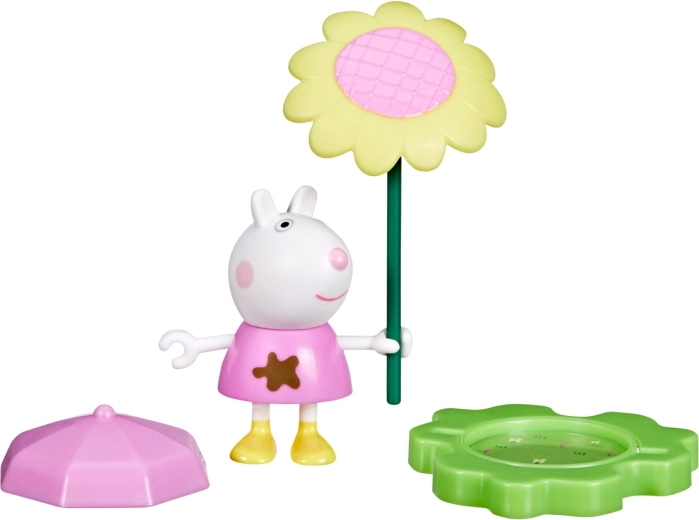 S touto sadou sa deti prenesú priamo do sveta PEPPA PIG. Postavička Suzy je pripravená na radovánky v mláke a blate, slnečník a dáždnik dodajú hre čaro premenlivého počasia. Stojanček zaistí, že figúrka bude stabilne stáť pri každom dobrodružstve.