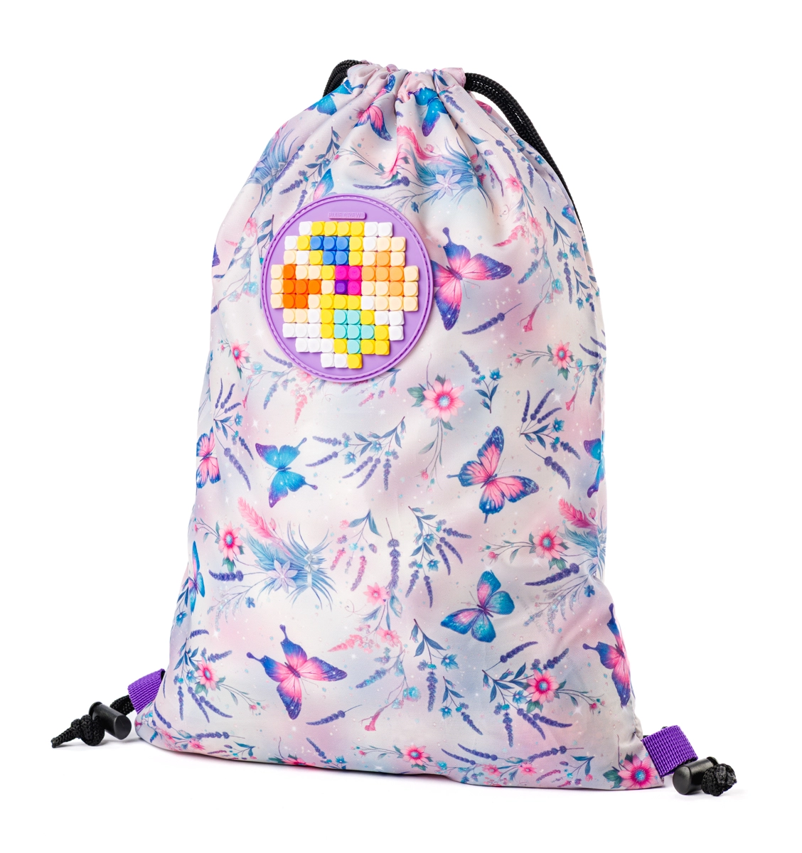 Dizajn s motýľmi dodáva veselý vzhľad a ľahko ladí s ďalšími doplnkami PIXIE CREW. Vak je skladný, takže ho bez problémov vložíte do školského batohu, alebo ho dieťa môže nosiť samostatne každý deň.