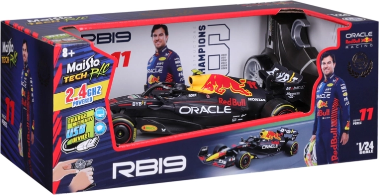 Zažite rýchlosť a presnosť s oficiálne licencovaným RC autom ORACLE RED BULL RACING RB19 v mierke 1:24. Model pilota Sergia Péreza ponúka 2,4GHz ovládanie až pre 4 hráčov, nabíjateľnú Li‑ion batériu cez USB, pištoľový ovládač a dosah až 35 m – ideálne na zábavu doma aj vonku.