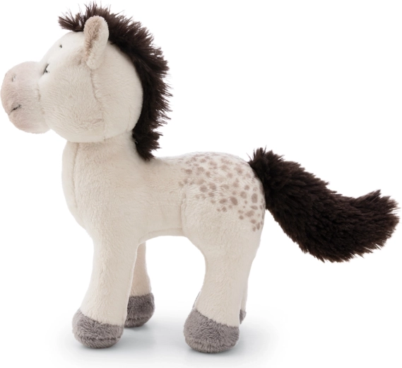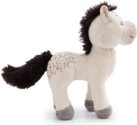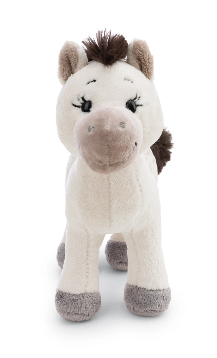 Poník Mony očarí svojím elegantným bielym kožúškom, tmavohnedou hrivou a chvostom a jemným škvrnitým vzorom na zadočku. Stojace prevedenie a kvalitné šitie zaisťujú odolnosť pri každodennom hraní, zatiaľ čo hebký povrch láka k nekonečnému túleniu.