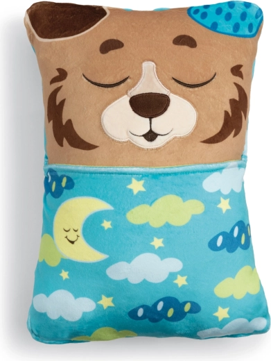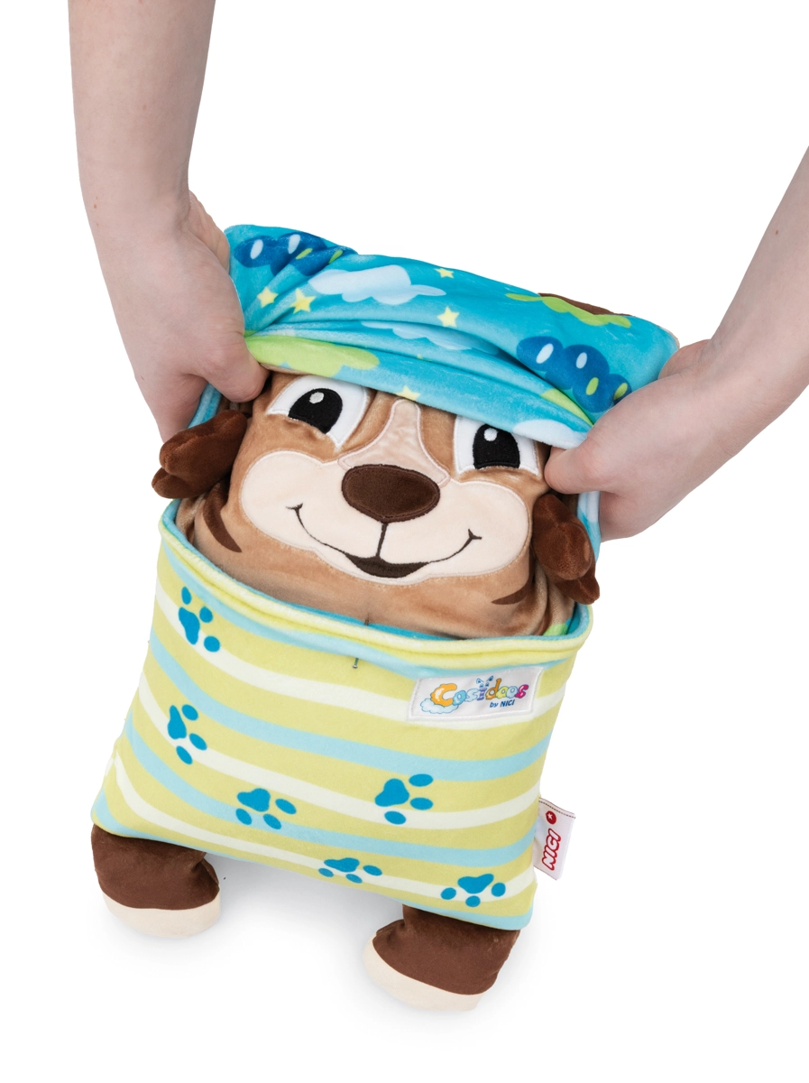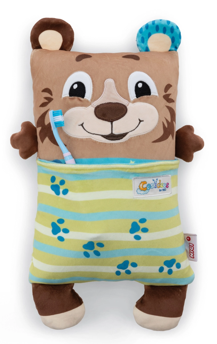 Roztomilý plyšový medvedík NICI Cosidoos je obojstranný maznáčik a vankúšik, ktorý sa jediným pohybom premení z veselého denného spoločníka na ukľudňujúceho kamarátka na spanie. Super mäkký plyš, praktické vrecká na drobnosti a ľahké prevrátenie podporujú hru, fantáziu aj pokojné zaspávanie. Ideálne pre deti od 12 mesiacov.