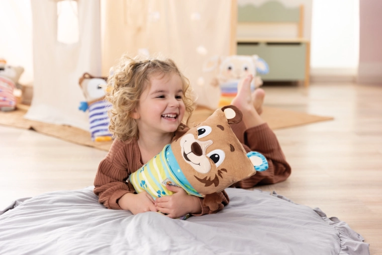 - 2 v 1: hračka aj vankúšik – podpora fantázie cez deň, jemné upokojenie na noc.